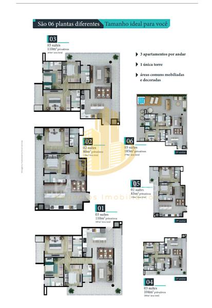 🔹 Apartamentos de 110 m² privativos com 03 suítes e 02 vagas de garagem
